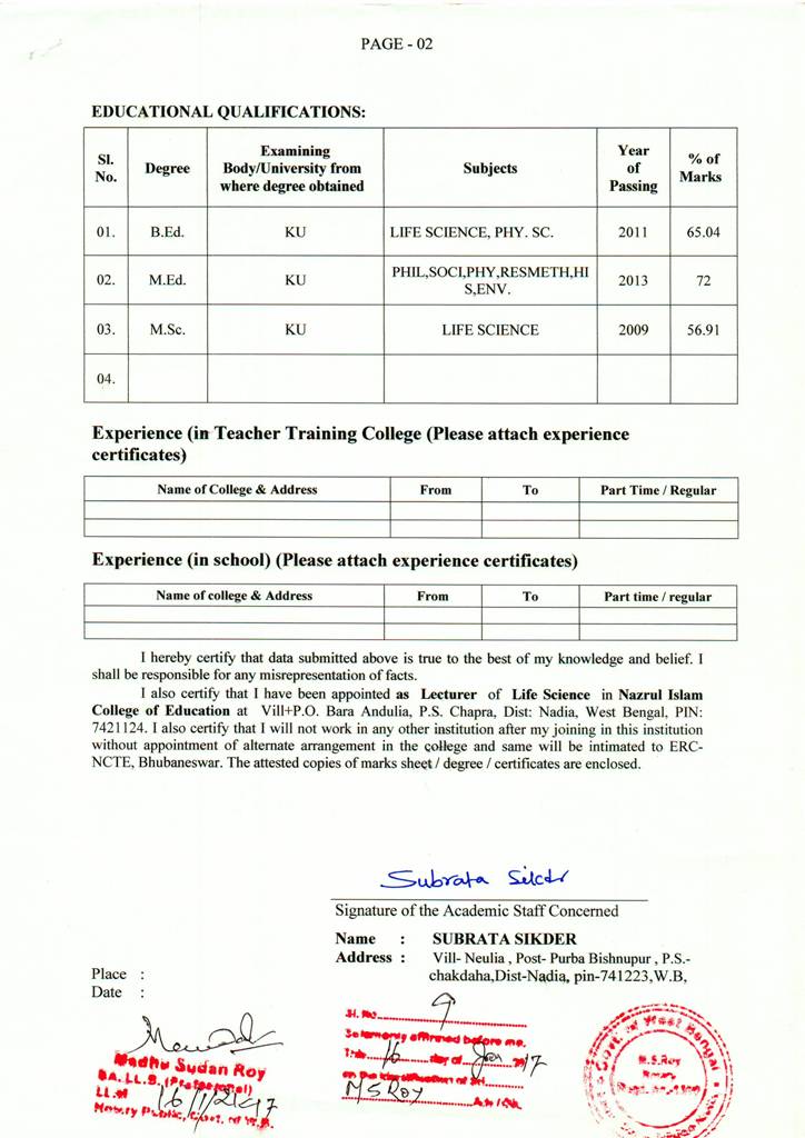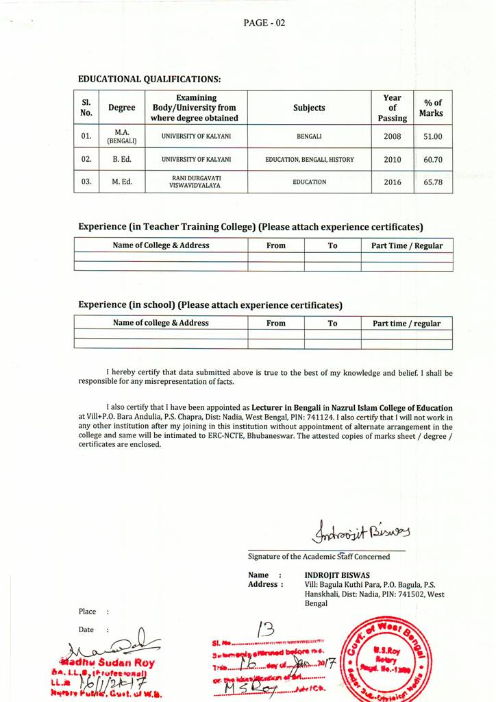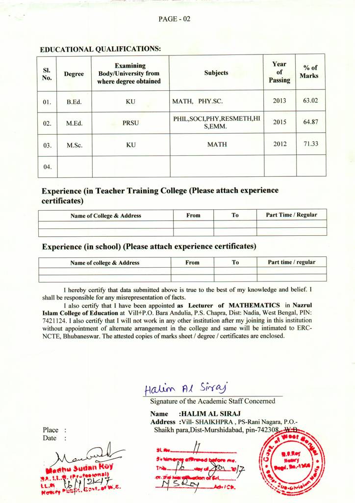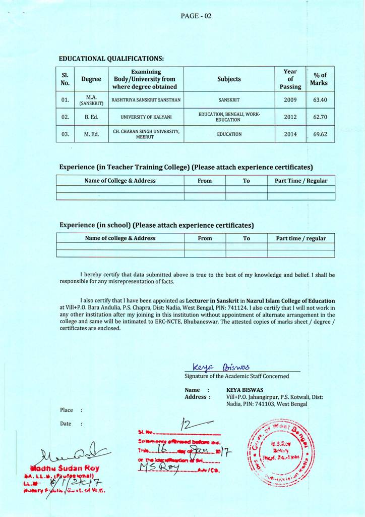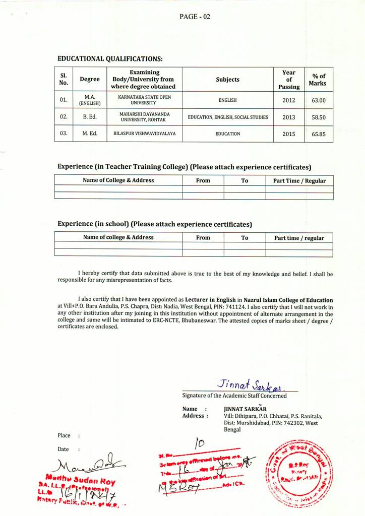 B.ED - Affidavits
